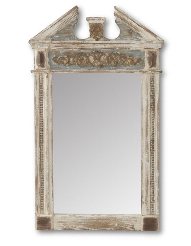 46.5 INCH WEATHERED WHITE BLUE & GOLD MIRROR