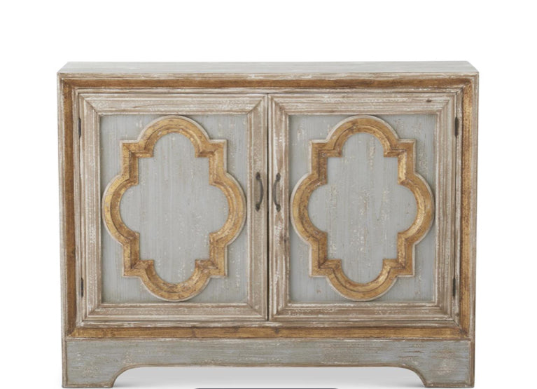 47.25 INCH WEATHERED BLUE & GOLD QUATREFOIL 2 DOOR CABINET