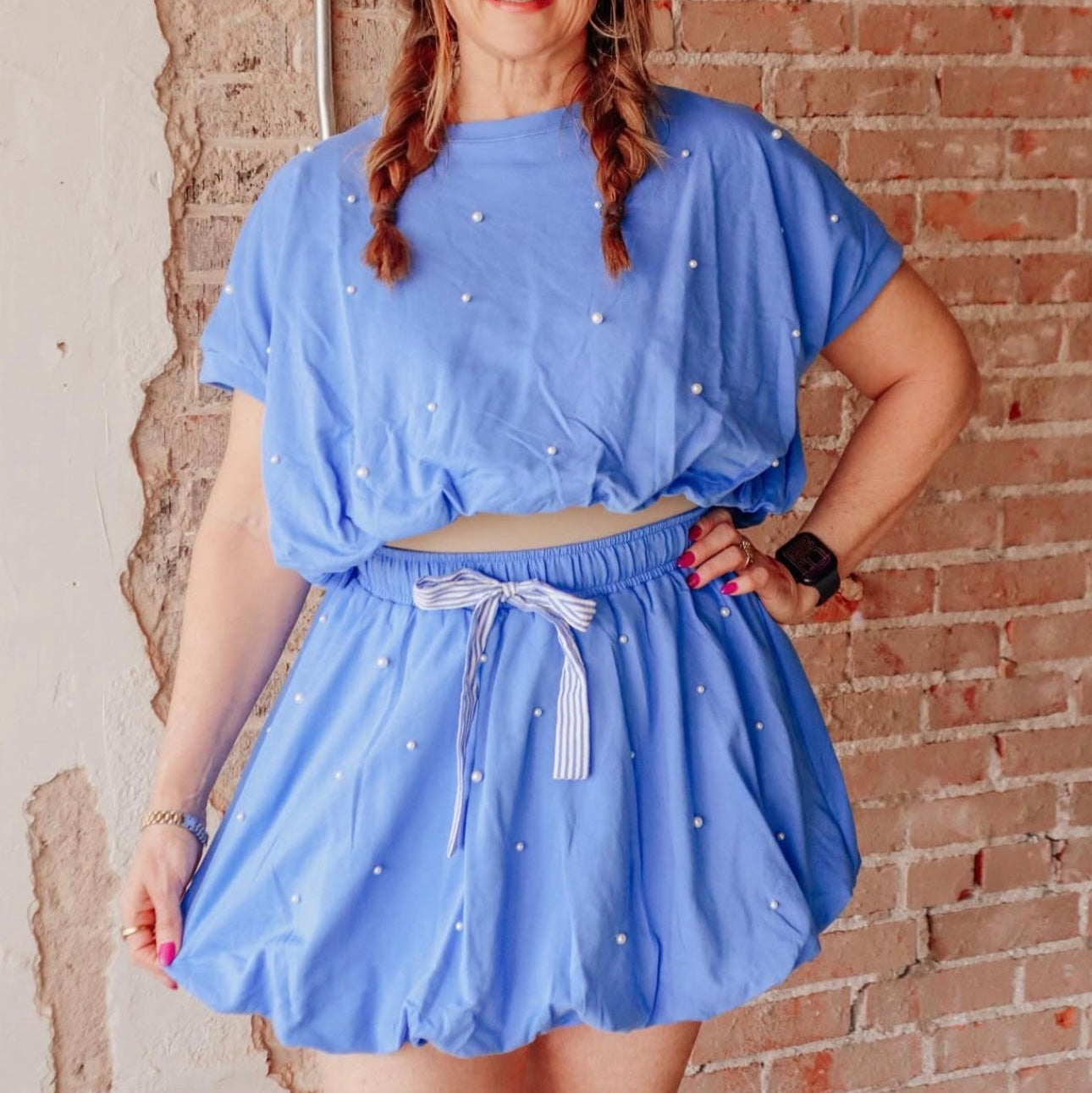 Blue Terry Pearl Bubble Skirt